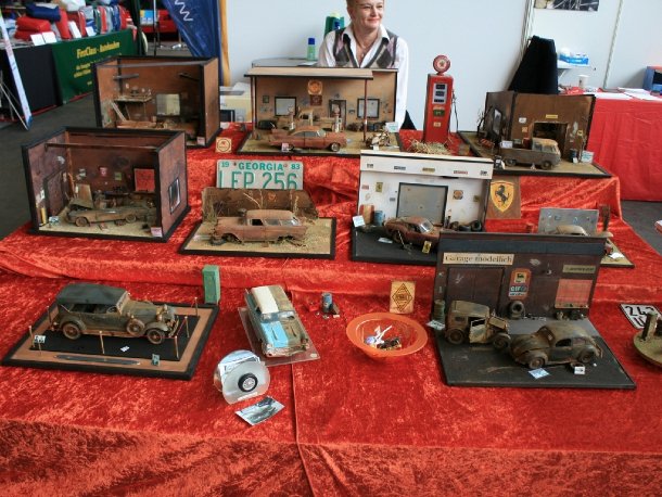 Neben DEM typischen Auto auf deutschen Oldtimermessen, einem Mercedes-Benz 300 SL, fand sich auch eine absolute Kuriosität in Halle 5. Haben sie immer schon von einem klassischen 190 SL Roadster geträumt, aber durch ihre Familie ist lediglich ein Kombi möglich, um alle von a nach b zu bringen? Nun, ihnen kann eventuell geholfen werden. Auf Basis eines Mercedes-Benz E-Klasse T-Modells, Baureihe S123, fand sich hier ein Umbau mit Front und Heck des 190 SL. Selbst die Türen waren bearbeitet worden. Daneben fanden sich zahlreiche neue und alte Klassiker, die zum Verkauf standen. Von Lotus Exige S1 über Maserati Ghibli und Iso Grifo bis zum selten Alfa Romeo TZ. Zwischendrin auch immer wieder Stände mit Modellautos und kompletten Dioramen. Ein Diorama ist eine der Wirklichkeit möglichst gut nachempfundene Szenerie. Hier gibt es auf Wunsch alles, von Scheunenfunden bis zur modernen Werkstatt. Der bekannte Oldtimerhändler Mirbach brachte einen wunderschönen grünen Alfa Romeo Montreal mit nach Bremen, der sich in punkto Schönheit mit einem top restaurierten blauen Porsche 911 Targa, einem ebenso wundervoll restaurierten Jaguar XK120 Roadster und einem seltenen Fiat 8V Rapi Coupé messen musste. Es handelte sich um den 86sten von nur 114 gebauten Fiat 8V, der in Bremen für 450.000,- Euro zum Verkauf angeboten wurde. Damit spielte er preislich im oberen Feld der Offerten mit, doch auch ein Alfa Romeo 6C 2500 S Cabrio mit Karosserie von Pinin Farina, das 1947 neu nach Südafrika geliefert worden war und seit den 80ern wieder in Europa ist, sollte nicht unerwähnt bleiben. Es sucht für 255.000,- Euro einen neuen Besitzer. In einem gänzlich anderen Kundenumfeld sucht ein Porsche 964 Carrera 4 Lightweight nach neuen Betätigungsfeldern. Er wurde vom R.E.D.-Rallyeteam in Schottland für die McRae-Brüder zu einem Rallyefahrzeug aufgebaut und steht inklusive Zubehör zum Verkauf.