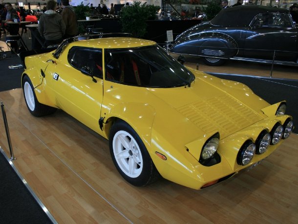 In Halle 5 gab es zwei Sonderschauflächen, eine davon beschreibe ich gesondert im Unterpunkt „100 Jahre Alfa Romeo“. Auf der anderen standen besondere Fahrzeuge, die zum Großteil zum Verkauf angeboten wurden. Sie alle verbindet die Herkunft: Italien. So stand dort ein Alfa Romeo 6C 1750 Grand Sport (GS) mit einer Karosserie von Brichet aus der Schweiz. Dieses Fahrzeug ist damit ein absolutes Unikat und steht sonst in einer privaten Sammlung. Ein 1975er Lancia Stratos in Gruppe 4-Rallye-Spezifikation stand in direkter Nachbarschaft des Alfa und zeigte sich dem Publikum in leuchtendem Gelb. Das Fahrzeug hat eine reiche Rennsportvergangenheit in Rallyes und Bergrennen hinter sich und steht aktuell zum Verkauf. In einem wunderschönen dunkelblau präsentierte sich ein Dino 246 GT mit gerade einmal 65.000 Kilometern auf dem Tacho. Laut Verkäufer stimmen alle Nummern mit den Werksdokumenten überein und auch Lack und Leder sind im Originalzustand. Dies darf man zwar auch vom dunkelrot lackierten Alfa Romeo 6C 2500 Sport Berlina Freccia d’Oro daneben sagen, jedoch wird hier auf den ersten Blick deutlich, dass der Wagen mehr Geschichten erzählen kann. Er wurde 1950 an einen Uhrmacher in der Schweiz ausgeliefert, der ihn 17 Jahre lang behielt und fuhr. Anschließend ging er an einen Sammler, der den 45.000 km gelaufenen Wagen zusammen mit 16 weiteren Oldtimern versteckte. Vor zwei Jahren wurde der Dornröschen-Schlaf dieser Fahrzeuge beendet und heute steht dieser Wagen fahrfertig aber mit ordentlich Patina zum Verkauf. Eine von Pininfarina gezeichnete Lancia Flaminia Limousine sorgte für Erstaunen. Die Optik wurde in großen Teilen vom Prototyp Lancia Florida übernommen, über den Batista Pininfarina einmal gesagt haben soll: „Damit möchte ich in den Himmel fahren.“ Spannend sind Details wie die Form der D-Säulen oder auch gleich zwei Scheibenwischer an der Heckscheibe an einem Auto mit Baujahr 1959. Heimlicher Star der Ausstellungsfläche war jedoch ohne Frage das Lancia Astura Cabriolet mit Boneschi-Karosserie. Dieser Wagen hat 2009 den Concours d’Elegance an der Villa d’Este gewonnen und man kann klar sehen, warum. Das über 6 Meter lange Fahrzeug ist vermutlich das letzte existierende Exemplar der 15 Chassis, die Lancia 1937 baute und von verschiedenen Karosseriefirmen einkleiden ließ.