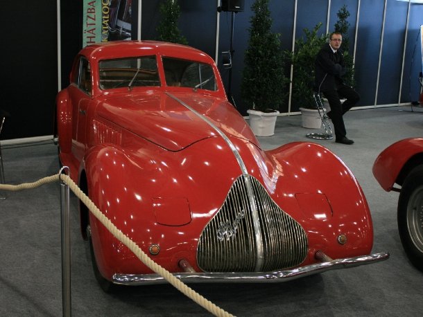 1938 nahm Alfa Romeo mit dem 8C 2900 B am 24-Stunden-Rennen in Le Mans teil. Das Fahrzeug führte mit über 10 Runden Vorsprung, musste dann jedoch aufgrund eines Ventildefektes aus dem Rennen genommen werden. Nach vielen Jahren in einer privaten englischen Fahrzeugsammlung, konnte es Mitte der 80er Jahre von Alfa Romeo zurückgekauft und restauriert werden. Die wahnsinnig sinnliche Karosserieform kam von Touring in Italien und war durchaus praktisch gestaltet. So gibt es seitliche abnehmbare Wartungsklappen und aerodynamisch günstig versteckte Lederriemen für die Motorhaube.