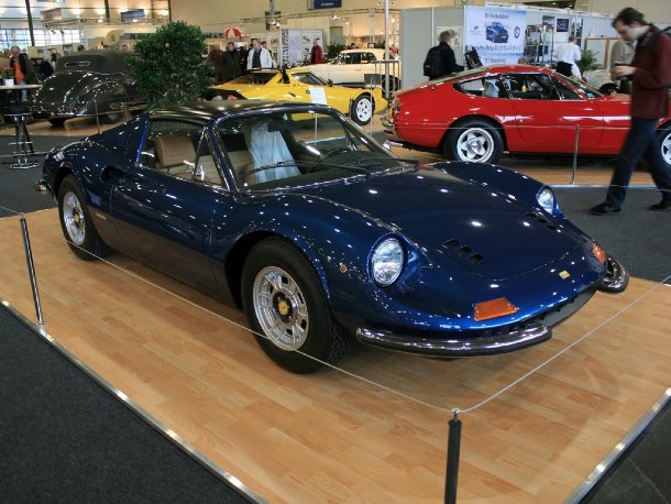In Halle 5 gab es zwei Sonderschauflächen, eine davon beschreibe ich gesondert im Unterpunkt „100 Jahre Alfa Romeo“. Auf der anderen standen besondere Fahrzeuge, die zum Großteil zum Verkauf angeboten wurden. Sie alle verbindet die Herkunft: Italien. So stand dort ein Alfa Romeo 6C 1750 Grand Sport (GS) mit einer Karosserie von Brichet aus der Schweiz. Dieses Fahrzeug ist damit ein absolutes Unikat und steht sonst in einer privaten Sammlung. Ein 1975er Lancia Stratos in Gruppe 4-Rallye-Spezifikation stand in direkter Nachbarschaft des Alfa und zeigte sich dem Publikum in leuchtendem Gelb. Das Fahrzeug hat eine reiche Rennsportvergangenheit in Rallyes und Bergrennen hinter sich und steht aktuell zum Verkauf. In einem wunderschönen dunkelblau präsentierte sich ein Dino 246 GT mit gerade einmal 65.000 Kilometern auf dem Tacho. Laut Verkäufer stimmen alle Nummern mit den Werksdokumenten überein und auch Lack und Leder sind im Originalzustand. Dies darf man zwar auch vom dunkelrot lackierten Alfa Romeo 6C 2500 Sport Berlina Freccia d’Oro daneben sagen, jedoch wird hier auf den ersten Blick deutlich, dass der Wagen mehr Geschichten erzählen kann. Er wurde 1950 an einen Uhrmacher in der Schweiz ausgeliefert, der ihn 17 Jahre lang behielt und fuhr. Anschließend ging er an einen Sammler, der den 45.000 km gelaufenen Wagen zusammen mit 16 weiteren Oldtimern versteckte. Vor zwei Jahren wurde der Dornröschen-Schlaf dieser Fahrzeuge beendet und heute steht dieser Wagen fahrfertig aber mit ordentlich Patina zum Verkauf. Eine von Pininfarina gezeichnete Lancia Flaminia Limousine sorgte für Erstaunen. Die Optik wurde in großen Teilen vom Prototyp Lancia Florida übernommen, über den Batista Pininfarina einmal gesagt haben soll: „Damit möchte ich in den Himmel fahren.“ Spannend sind Details wie die Form der D-Säulen oder auch gleich zwei Scheibenwischer an der Heckscheibe an einem Auto mit Baujahr 1959. Heimlicher Star der Ausstellungsfläche war jedoch ohne Frage das Lancia Astura Cabriolet mit Boneschi-Karosserie. Dieser Wagen hat 2009 den Concours d’Elegance an der Villa d’Este gewonnen und man kann klar sehen, warum. Das über 6 Meter lange Fahrzeug ist vermutlich das letzte existierende Exemplar der 15 Chassis, die Lancia 1937 baute und von verschiedenen Karosseriefirmen einkleiden ließ.