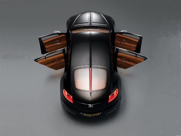 Gegenüber der Version, die letztes Jahr im Rahmen der 100-Jahre-Feierlichkeiten im Bugatti-Werk in Molsheim den eingeladenen Kunden vorgestellt wurde, fällt als erste Änderung die nun komplett schwarz lackierte Karosserie auf. Über Dach und Heckscheibe läuft eine kammartige Sicke, die an den legendären Bugatti Type 57 Atlantic erinnert. Unterm Heck lauern acht Auspuffendrohre darauf, den Sound des gewaltigen Kraftwerkes in die Umwelt zu entlassen. Vorne findet sich der traditionelle Bogengrill wieder, der seit den 1920er Jahren Bugatti-Fahrzeuge in verschiedenster Form schmückte. Die Karosserie selbst besteht aus Aluminium- und Kohlefaserteilen, die in Atlantic Schwarz lackiert wurden. Der Name Galibier stammt im übrigen von einem sehr anspruchsvollen Alpenpass, der bei der Tour de France bewältigt werden muss. Da dieses Rennen früher auch für Automobile veranstaltet wurde, findet er sich auch bereits auf viertürigen Bugatti Type 57 Limousinen wieder.