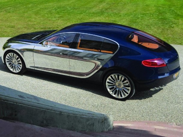 Die Motorhaube ist zweigeteilt und schwingt zur Mitte hin auf. Unter ihr verbirgt sich der bekannte 8-Liter-V16-Motor, der hier jedoch nicht, wie im Veyron, über eine Turboaufladung verfügt, sondern von zwei Kompressoren den Marsch geblasen bekommt. Genaue Leistungsdaten hat Bugatti bislang nicht veröffentlicht, man darf aber davon ausgehen, dass er nicht ganz so kraftvoll wie der hauseigene Supersportwagen sein wird. Der Motor bietet als Besonderheit eine Flex-Fuel-Funktion, wodurch ein Betrieb mit Ethanol möglich ist. Über einen permanenten Allradantrieb wird die Leistung auf alle vier Räder übertragen und mittels einer Carbon-Ceramic-Bremse wird der Luxusliner wieder sicher zum Stillstand gebracht.