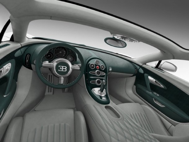 Das erste und zugleich auffälligste Fahrzeug der drei trägt einen knallgelben Lack, der sich auch auf den Tankdeckeln und den Lufteinlässen am Motor findet, während der untere Karosseriebereich dunkles Sichtcarbon zeigt. Die Felgen sind passend dazu schwarz beschichtet worden. Diese Farbkombination aus schwarz und gelb setzt sich auch im gesamten Interieur fort. Die Sitze, der untere Bereich des Armaturenbretts, der Mitteltunnel und die äußeren Umrandungen der Türtafeln präsentieren sich in gelbem Leder mit schwarzen Kontrastnähten, sowie Steppnähten auf den Sitzflächen und dem hinteren Bereich des Mitteltunnels. Der obere Bereich des Instrumententrägers, das Lenkrad, der Schalthebel und die Innenfläche der Türverkleidungen zeigen tiefschwarzes Leder mit gelben Ziernähten. Abgerundet wird der Innenraum durch Dekorflächen aus schwarzem Sichtcarbon. Damit greift dieser Veyron Grand Sport das Lieblingsfarbschema von Firmengründer Ettore Bugatti auf und transferiert es in die heutige Zeit. Der Preis für diesen Wagen wird von Bugatti mit 1,58 Millionen Euro beziffert.