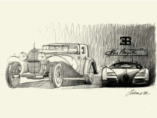 Exakt ein Jahr nachdem die Legenden-Sonderserie des Veyron Grand Sport Vitesse im Rahmen des Concours d’Elegance im kalifornischen Pebble Beach vorgestellt wurde, zeigt Bugatti kommende Woche an gleicher Stelle das sechste und damit finale Mitglied des Legendenreigens. Geehrt wird in diesem Falle der Firmengründer und Namensgeber Ettore Bugatti höchstselbst, dessen Initialen bis heute auf jedem Bugatti Veyron am Heck zu finden sind – auch wenn sein vollständiger Name Ettore Arco Isidoro Bugatti noch zwei Initialen mehr benötigen würde.