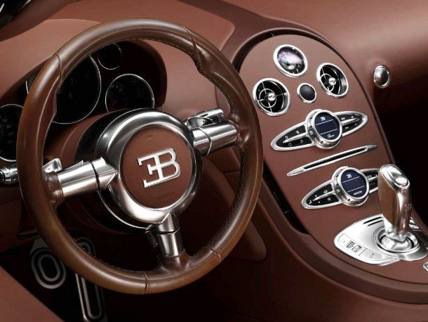 Zugleich als Kontrast und als Aufgriff des Exterieurs dürfen die Elemente in blauem Sichtcarbon gelten, die sich in den Türen und auf dem Deckel des Ablagefaches zwischen den Sitzen finden. Letzteres ist zudem mit einem platinierten Emblem des Tanzenden Elefanten verziert – jenem Symbol, das von Ettores Bruder Rembrandt Bugatti als Skulptur erschaffen wurde und anschließend als Kühlerfigur den Bugatti Type 41 Royale schmückte.