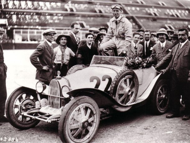 1925 und 1926 gewann Meo Constantini die berüchtigte Targa Florio auf Sizilien mit dem Bugatti Type 35, sowie diverse Grand Prix, wie hier in Frankreich.
