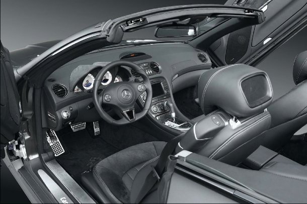Eine Steigerung der Motorleistung ist aber selbstverständlich nicht alles, was Carlsson zu bieten hat. Ein sehr umfangreiches Aerodynamikpaket soll helfen, die Mehrleistung sicher auf die Straße zu bringen. Im Bereich der Front- und Heckschürze wurden Elemente aus hochwertigem Carbon verbaut. Eine weitere Optimierung der Straßenlage erfolgt durch eine elektronische Tieferlegung mit Namen „C-Tronic-Suspension“ von bis zu 30 mm, in Kombination mit dem ABC-Sportfahrwerk von AMG. Um den SL CK63RS auch wieder sicher zum Stehen zu bringen, verbaut Carlsson eine mächtige Carbon-Bremse. Auf der Vorderachse messen die Scheiben 398×36 mm und werden von 6-Kolben-Festsätteln in die Zange genommen. Auf der Hinterachse mühen sicher immerhin noch 4-Kolben-Festsättel die Scheiben im Format 330×35 mm angemessen zu verzögern.