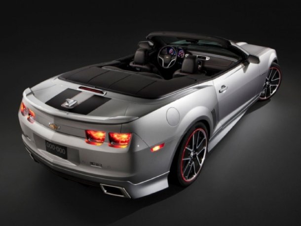 Um die Besatzung jederzeit sicher wieder zum Stillstand bringen zu können, verbaute man beim Synergy Concept eine Hochleistungsbremsanlage von Brembo mit roten Bremssätteln. Auf Motorhaube und Kofferraumklappe finden sich mattschwarze Streifen, die auf der Innenseite einen dünnen roten Rand erhalten haben. Eine ähnliche Farbgebung findet sich auf den 21 Zoll großen Leichtmetallfelgen, die an der Außenkante einen roten Rand haben. Durch eine Tieferlegung, die vom authorisierten Zulieferer Pedders vorgenommen wurde, werden die Karosserieform und die schönen Felgen noch besser in Szene gesetzt. Die hauseigene Accessoires-Abteilung hat sich bei den Karosserieteilen austoben dürfen und verpasste dem Camaro Cabrio neue Schürzen vorn und hinten, Schwellerleisten und eine Spoilerlippe auf dem Kofferraumdeckel. Während in der Front ein neuer, in Wagenfarbe lackierter Kühlergrill integriert ist und unter der Schürze eine Spoilerlippe angebaut wurde, findet sich hinten ein modifizierter Diffusor. So gerüstet wirkt das Camaro Synergy Series Concept nicht nur markanter, auch das Fahrverhalten bei hohen Geschwindigkeiten wird verbessert.