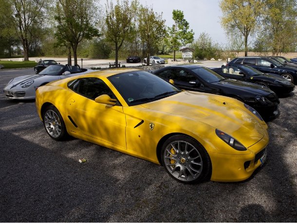 Der erste Stop diente neben der leiblichen Stärkung auch dazu, dass sich die Teilnehmer kennenlernen konnten. Obwohl einige Teilnehmer bereits zum dritten Mal dabei waren, gab es doch Einige, die zum ersten Mal an einem Carpassion.com-Treffen teilnahmen und deshalb einiges an Bekanntschaften aufzuholen hatten. Irgendwann war jede Hand geschüttelt und jedes Gesicht begrüßt. So zog die Karawane bestens gelaunt weiter, angeführt vom Veranstalter in seinem schwarzen Ferrari F360 Spider. Die Route führte wieder zurück nach Bayern, genauer gesagt zum Waginger See.