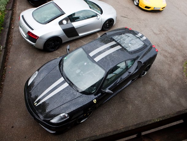 Der erste Stop diente neben der leiblichen Stärkung auch dazu, dass sich die Teilnehmer kennenlernen konnten. Obwohl einige Teilnehmer bereits zum dritten Mal dabei waren, gab es doch Einige, die zum ersten Mal an einem Carpassion.com-Treffen teilnahmen und deshalb einiges an Bekanntschaften aufzuholen hatten. Irgendwann war jede Hand geschüttelt und jedes Gesicht begrüßt. So zog die Karawane bestens gelaunt weiter, angeführt vom Veranstalter in seinem schwarzen Ferrari F360 Spider. Die Route führte wieder zurück nach Bayern, genauer gesagt zum Waginger See.