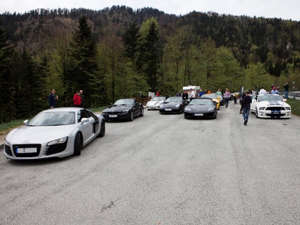 Am nächsten Morgen grollten schon früh die Motoren der heraneilenden Eventteilnehmer, die Gruber Alm wurde zum Motodrom. Sportwagen italienischer, deutscher und amerikanischer Herkunft füllten die Parkplätze bereits gegen Mittag zahlreich, doch trotzdem wurde die Zahl der Fahrzeuge noch immer größer und so waren gegen Ende diesen Tages gut und gerne 30 Fahrzeuge in Seeon zugegen.