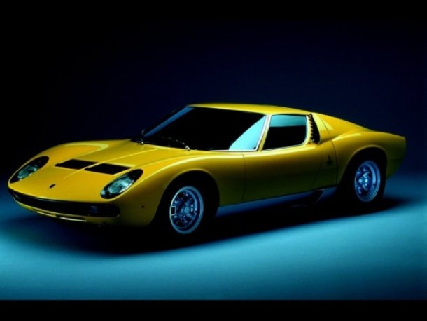 Ferruccio Lamborghini lässt seinen fabrikneuen Ferrari 250 GT von seinen Traktoringenieuren komplett zerlegen und ist sich sicher, es besser machen zu können. Ganz schön mutig. Ein paar Jahre später kommt sein Durchbruch mit dem 1966 in Genf vorgestellten Miura P400. Dies ist erst der dritte, aber gleichzeitig der erste radikale Sportwagen von Lamborghini und setzt neue Maßstäbe mit seinem Konzept und atemberaubenden Design. Er bringt damit Lamborghini endlich in die Gewinnzone. Innovative Entwicklungen aus der Luftfahrt sind Bestandteil der Karosserie, die selbsttragend und mit einer Monocoque-Fahrerzelle versehen ist. Der 4-Liter-V12-Kurzhuber ist quer vor die Hinterachse eingebaut und heizt seinem Fahrer gehörig ein. Dies sind beste Voraussetzungen für hohe Kurvengeschwindigkeiten, aber auch im Sprint donnert die PS-stärkste Version P400 SV mit 385 PS in rasanten 5,5 Sekunden los. Der Vortrieb wird durch gleichzeitigen Auftrieb an der Vorderachse bei ca. 295 km/h gebremst. Von 1966 – 1973 gebaut durchläuft der Miura mehrere "Evolutionsstufen", da Ferruccio niemals zufrieden war. In dieser Zeit haben insgesamt ca 765 Fahrzeuge des Ur-Miura P400 (350 PS), des P400 S (370 PS) und des P400 SV inklusive eines einmalig gebauten Roadsters das Werk in Sant'Agata Bolognese verlassen. (Bildquelle: Lamborghini)