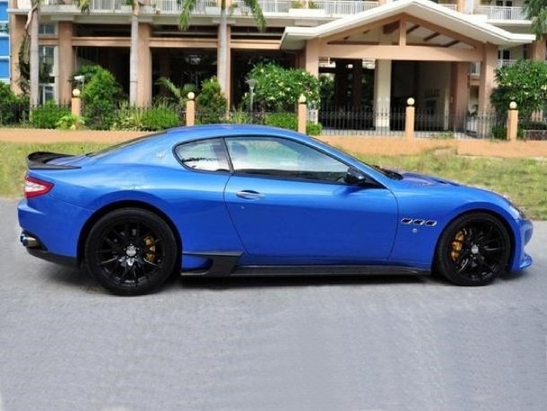Auch der Innenraum erhält auf Wunsch eine Aufwertung. Beim Präsentationsfahrzeug wurden die Sportschalensitze aus dem MC Stradale verbaut und anschließend das gesamte Interieur mit einem Mix aus blauem Leder und schwarzem Alcantara bezogen. Blaue Kontrastziernähte und Carbondekorleisten runden das sportlich-elegante Arbeitszimmer des Maserati ab. Dazu gibt es Aluminiumpedale. Farblich passend dazu wurde die Karosserie im Farbton „Malta Blau metallic“ lackiert. DMC benennt den Maserati GranTurismo nach vollendeter Operation auch gleich um: Sovrano heißt er nun, zu deutsch: der Herrscher oder der Souveräne.