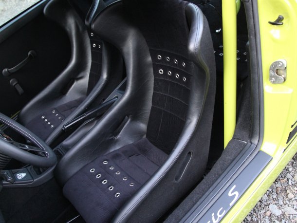 Die Sportschalensitze sehen zwar alt aus, sind aber auf neuestem Sicherheitsstand und kommen zusammen mit Vierpunktgurten.