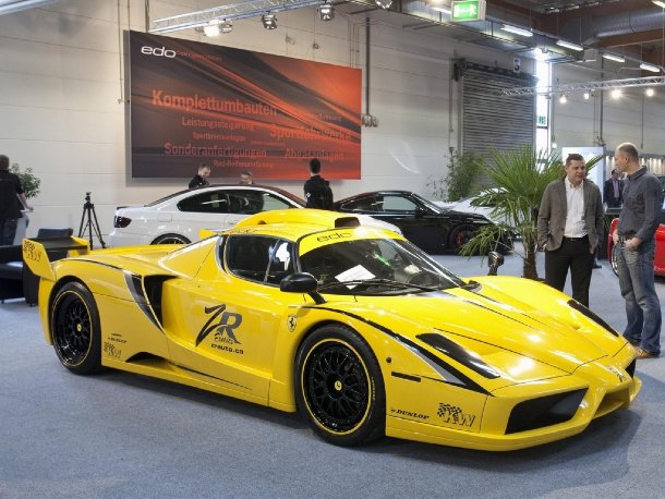 Dies trifft auch auf den kanadischen Besitzer dieses gelben Enzo zu. 2009 sah er sich daher weltweit nach einem geeigneten Betrieb zum Umbau seiner Rarität zu einem einzigartigen Unikat um. Fündig wurde er in Ahlen/Westfalen bei Beckum im Kreis Warendorf. Hier sitzt die Firma Edo Competition, die schon durch manche Umbauten von sich Reden machte. Unvergessen ist mit Sicherheit die „Biene Maja“, die man an sonnigen Tagen als „Touri-Schreck“ auf der Nordschleife erleben kann. Der Enzo XX Evolution wurde zwar bereits Ende 2009 der Presse vorgestellt und stand auch auf der Essen Motorshow, erst jetzt auf der lokalen Motorshow in Bad Salzuflen in Ostwestfalen stand jedoch die finale Version inklusive finaler An- und Umbauten.