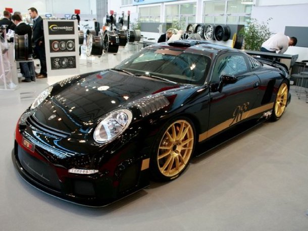 Die Hallen 2, 10, 11 und 12 stehen traditionell den bekannten großen Tuningunternehmen zur Verfügung. Dazu zählen auch Hersteller von Fahrwerken und Felgen, die anhand von interessanten aktuellen Fahrzeugen ihr Repertoire vorstellen. Das Hauptaugenmerk liegt jedoch ohne Zweifel auf den Tunern selbst, die die Essen Motorshow als letzte Chance des Jahres verstehen, um Neuheiten auf den Markt zu bringen oder allgemein ihr Produktportfolio zu zeigen. Aus Dortmund reiste Porsche-Veredler 9ff mit insgesamt vier Fahrzeugen an. Neben dem bereits im vergangenen Jahr präsentierten Speed9, der in diesem Jahr ein optionales Hardtop erhält und dem Veyron-Konkurrenten GTurbo 1200 auf Basis des GT3, der mit 1200 PS so ziemlich alles auf vier Rädern in Grund und Boden fährt, stellt 9ff auch die Serienversion des GT9R vor. 20 Exemplare dieses Fahrzeuges sollen ab kommendem Jahr verkauft werden. Das schwarz-goldene Fahrzeug in Essen ist bereits verkauft und wird nach Ostasien gehen. Des weiteren hat man mit dem GT9R noch einiges im kommenden Jahr vor, aber darüber wird das CPzine im Rahmen einer Besichtigungstour Anfang 2011 mehr berichten können.