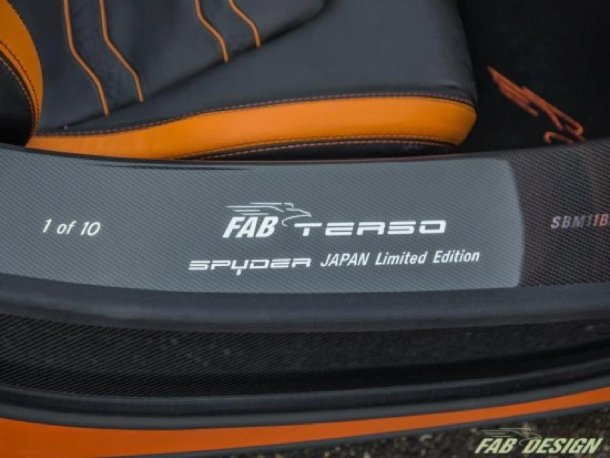 Nachdem FAB Design Mitte Dezember letzten Jahres feierlich die Eröffnung einer Vertretung in Japans Hauptstadt Tokio bei Office-K feierte, wurde nun auf dem Tokyo Auto Salon mit dem Terso Spyder Japan Limited Edition ein auf nur 10 Exemplare limitiertes Fahrzeug speziell für den ostasiatischen Markt vorgestellt. Als Basis dient dabei der McLaren MP4-12C Spider, dessen Coupé-Ableitung bereits auf dem Genfer Salon 2012 als FAB-Veredelung Terso seine Premiere feierte. Wie schon bei der geschlossenen Version verbaut FAB Design auch beim Terso Spyder ein auffälliges Bodykit mit Verbreiterungen und einem feststehenden Heckflügel oberhalb des serienmäßigen Leitwerks. Darüber hinaus wurden die vorderen und seitlichen Lufteinlässe vergrößert. Durch einen Frontsplitter unterhalb der vorderen Schürze, tiefer heruntergezogenen Schwellerleisten und einem größeren Diffusor, sowie einem unterhalb der Frontscheibe verbauten zusätzlichen Spoilerelement wird mehr Abtrieb erzeugt.