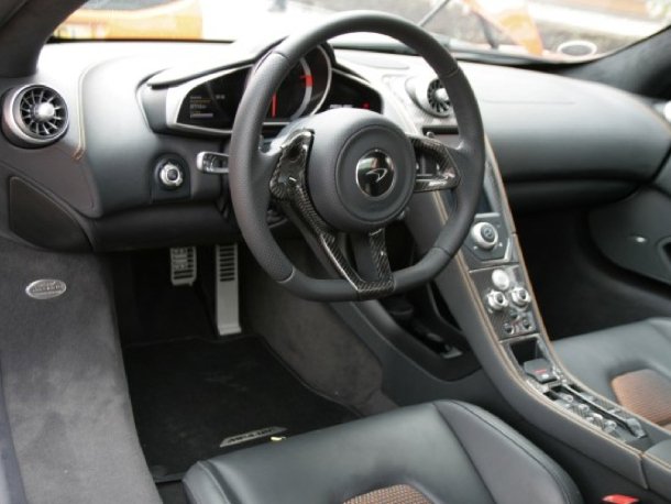 Dieses Cockpit befand sich in einem Volcano Orange lackierten Spider, der, wie die anderen drei Fahrzeuge, direkt auf McLaren in Großbritannien zugelassen war. Als Testwagen konnte man hier natürlich auf eine reichhaltige Ausstattungsliste blicken, die neben den Carbon Ceramic Bremsen auch Sichtcarbon am Frontsplitter, den Außenspiegelgehäusen, den seitlichen Luftleitblechen an den Lufteinlassöffnungen, der Motorverkleidung und dem Diffusor umfasste. Auch das Interieur zeigte viel von der leichtgewichtigen Kohlefaser, die beim Bau des Wagens exzessiv genutzt wird, um das Gewicht so gering wie möglich zu halten. Fahrer und Beifahrer nehmen in einer Mono-Zelle Platz, die derartig verwindungssteif ist, dass für den Spider keine Änderungen gegenüber dem Coupé erfolgen müssen. Das Mehrgewicht von 40 Kilogramm rührt einzig und allein vom Mechanismus des Klappverdecks her. Dieses birgt jedoch neben der versenkbaren Rückscheibe einen weiteren Vorteil zum Coupé: Wenn das Verdeck geschlossen ist, kann der Verdeckkasten als zusätzlicher Kofferraum genutzt werden. Damit ist der MP4-12C Spider wohl das einzige Cabrio mit mehr Stauraum als das dazugehörige Coupé.