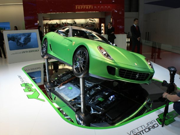 Ferrari ist der erste Hersteller, der sich daran wagt, KERS in einem seriennahen Auto zu verbauen. Mit dem mattgrün lackierten 599 HY-KERS Vettura Laboratorio (Experimental-Fahrzeug) stellte man in Genf den ersten Testträger vor.
