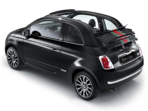 Gucci-Creative-Director Frida Giannini schloss sich mit verschiedenen Materialien und einem Fiat 500C für einige Zeit in einen Raum ein, um ungestört kreativ zu werden – so geht zumindest das Gerücht um. Das Ergebnis weiß jedenfalls unabhängig vom wahren Entstehungsprozess zu überzeugen. Es wird zwei Versionen geben. Eine trägt schwarzen Lack und glänzende Chrom-Anbauteile, die Zweite fährt in fast unschuldigem weiß vor und bekommt dazu matte Chrom-Elemente verbaut. Beide Varianten tragen ein schwarzes Stoffverdeck mit den Gucci-typischen grünen und roten Streifen. Auf den Nabendeckeln der 16 Zoll großen Leichtmetallräder findet sich das Gucci-Logo, zwei ineinandergedrehte „G“, in Wagenfarbe. Dazu sitzt der Gucci-Schriftzug auf der Heckklappe und den B-Säulen.