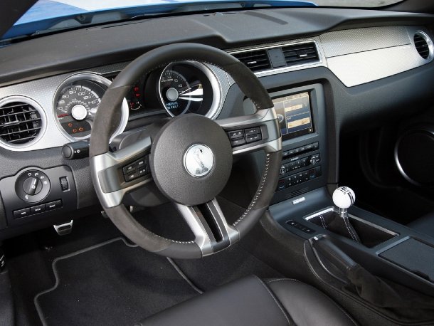 Um die komplette Kraft auf den Boden bringen zu können, erhält der Mustang ein Motorsportfahrwerk inklusive Panhardstab, einstellbare Längslenkern und Feder-/Dämpfer-Einheiten. Den Kontakt zur Straße stellen 20 Zoll-Räder mit OZ-Leichtmetallfelgen sicher, für beste Verzögerung sorgen 6-Kolben-Bremszangen rundum und 380 Millimeter große Bremsscheiben, die wahlweise gelocht oder geschlitzt sind.