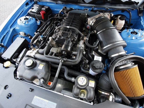 Schon beim ersten Ford Mustang gab es die Shelby-Variante mit einer Kobra im Kühlergrill. Auch das aktuellste Modell ist als Shelby GT500 lieferbar und bringt serienmäßig 540 PS auf die Straße. Nach einer gründlichen Überarbeitung in München schnaufen jedoch sogar 810 durchtrainierte Wildpferde unter der Haube. Der Geiger Mustang Shelby GT500 ist geboren. Ein großer Kompressor bläst dem 5,4-Liter-V8 den Marsch.