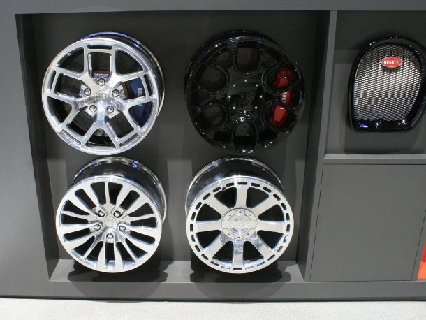 Bugatti zeigte in Genf neben einem noch nicht zusammengesetzten Veyron Grand Sport die Individualisierungsmöglichkeiten, die Kunden bei der Erstellung ihres Neuwagens haben. Neben Lackfarben in allen Tönen des Regenbogens kann man auch Varianten von Sichtcarbon, wahlweise auch farblich eingefärbt, bestellen. Oder wie wäre es mit poliertem Aluminium? Für den Innenraum stehen mindestens ebensoviele Optionen zur Wahl, wie für das Exterieur. Wer es hier nicht schafft, ein für sich passendes Unikat zu erschaffen, dem ist wohl nur schwerlich zu helfen.