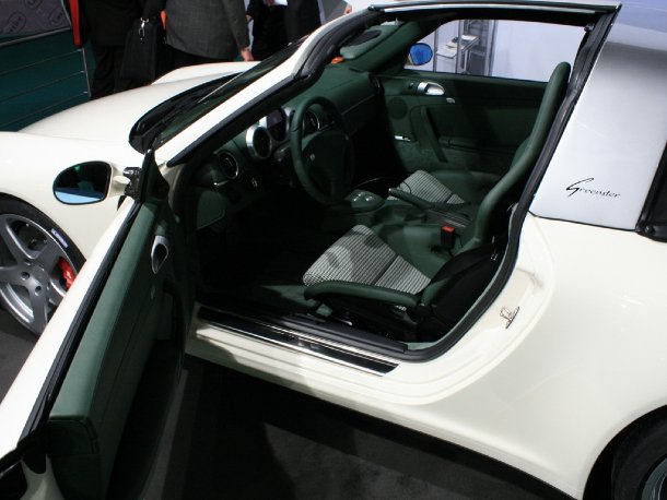 RUF stand in der „Ökohalle“, was durchaus seine Richtigkeit hat, wenn man das Engagement beim Bau von Elektrofahrzeugen sieht. Mit einem hellelfenbein-farbenen Greenster zeigte man das erste Kundenfahrzeug aus der beginnenden Kleinserie. In Pfaffenhausen ist man sehr überrascht, wie gut die Idee eines Elektromotors in einer 911er Karosserie eingeschlagen hat – selbst aus Hollywood gibt es erste Anfragen von Filmstars, die ihren Prius gegen einen Greenster eintauschen möchten.