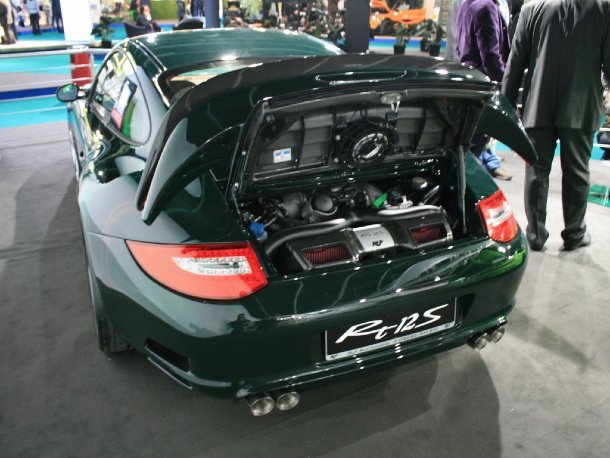 RUF stand in der „Ökohalle“, was durchaus seine Richtigkeit hat, wenn man das Engagement beim Bau von Elektrofahrzeugen sieht. Mit einem hellelfenbein-farbenen Greenster zeigte man das erste Kundenfahrzeug aus der beginnenden Kleinserie. In Pfaffenhausen ist man sehr überrascht, wie gut die Idee eines Elektromotors in einer 911er Karosserie eingeschlagen hat – selbst aus Hollywood gibt es erste Anfragen von Filmstars, die ihren Prius gegen einen Greenster eintauschen möchten.