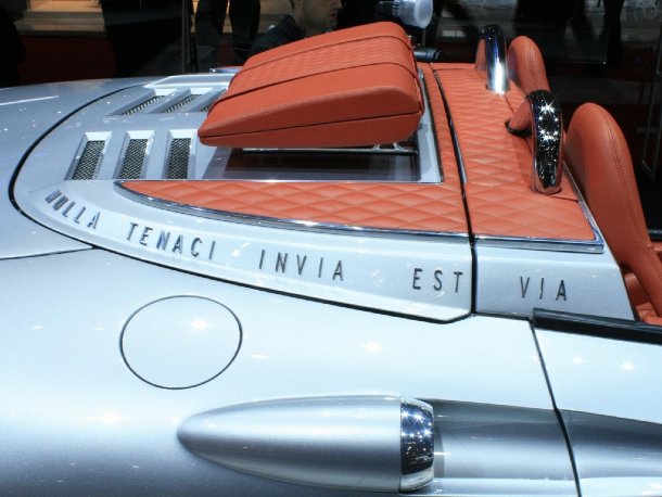 Der neue C8 Aileron wurde bereits im Vorjahr in Genf präsentiert und geht nun nach etlichen Testkilometern endlich in Serie. Ihm wird mit dem C8 Aileron Spyder eine faszinierende offene Version zur Seite gestellt, die mit ebensoviel Liebe zum Detail entsteht, wie jeder andere Spyker. So ist der Koffer auf der hinteren Gepäckbrücke speziell aerodynamisch ausgeformt, um bei geöffnetem Verdeck keine Verwirbelungen zu erzeugen, die das Fahrzeug einbremsen könnten. Auf dem Verdeckkasten findet sich das lateinische Spyker-Motto: Nulla Tenaci Invia Est Via. Für den Hartnäckigen ist keine Straße unbefahrbar. Das soll allerdings kein Aufruf sein, mit dem C8 auf Wald- und Wiesenwege zu fahren.