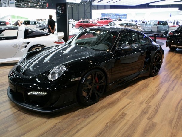 Auch auf 997-Facelift-Basis gibt es wieder den Techart-Überflieger GTStreet R. Die 660 PS starke schwarze Kanonenkugel brennt nicht nur schwarzes Gummi auf den Asphalt, sondern zündet den Nachbrenner auch noch derart vehement, dass in nur 3,5 Sekunden die 100-km/h-Schallmauer fällt und der Vortrieb erst bei 345 km/h ein Ende findet, sofern der Pilot sich traut.
