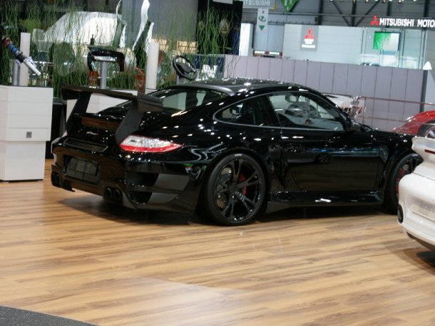Auch auf 997-Facelift-Basis gibt es wieder den Techart-Überflieger GTStreet R. Die 660 PS starke schwarze Kanonenkugel brennt nicht nur schwarzes Gummi auf den Asphalt, sondern zündet den Nachbrenner auch noch derart vehement, dass in nur 3,5 Sekunden die 100-km/h-Schallmauer fällt und der Vortrieb erst bei 345 km/h ein Ende findet, sofern der Pilot sich traut.