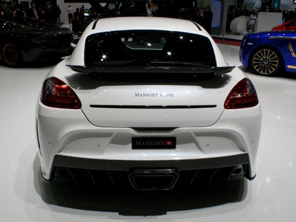 Als viertes Ausstellungsstück präsentierte die schweizer Mansory-Abteilung – bis vor kurzem noch unter „Rinspeed“ bekannt – den C One, einen getunten Porsche Panamera. Auch hier kommt ein umfassendes Karosseriekit aus Carbon zum Einsatz, welches von der Frontschürze über die Motorhaube bis zur Heckschürze mit Diffusoreinsatz alles umfasst, was die Optik des Panamera verändern kann. Unter der Haube wurde kräftig am V8-Turbomotor gearbeitet, was in einem Endergebnis von 690 PS und 850 Nm Drehmoment gipfelt.