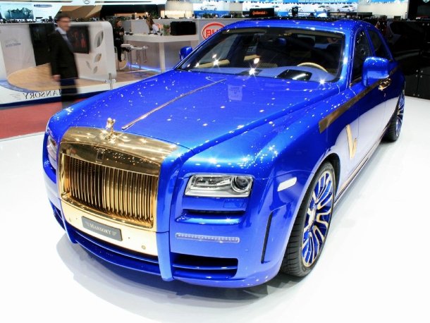 Das auffälligste Fahrzeug am Mansory-Stand war jedoch ohne Frage der umgebaute Rolls-Royce Ghost. Entgegen erster Meldungen trägt er bislang noch keinen eigenen Namen, dafür aber ein erstes Mansory-Bodykit, das ihn sportlicher aussehen lässt ohne dabei zu prollig zu wirken. Dagegen ist jedoch die Farbwahl mit einer blauen Lackierung und vergoldeten Accessoires nur etwas für extrovertierte Menschen. Der Innenraum ist in blauem und weißem Leder gehalten. Unter der Haube wird dem V12 mittels größerer Turbolader ordentlich eingeheizt. 720 PS und 1.020 Nm Drehmoment stehen am Ende unterm Strich.