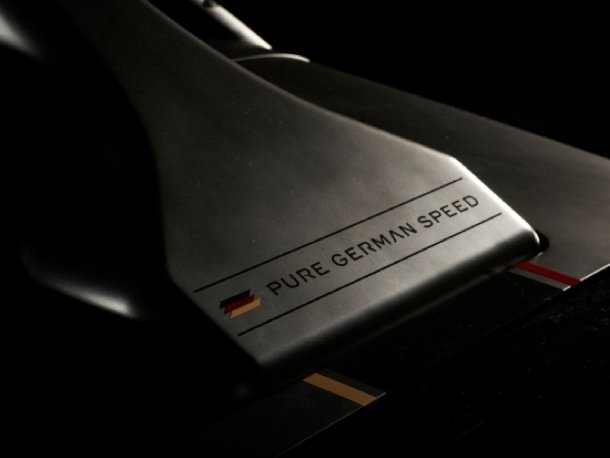 Das Motto der Firma Gumpert klebt selbstbewusst am Fuße des Lufteinlasses auf dem Dach: Pure German Speed.