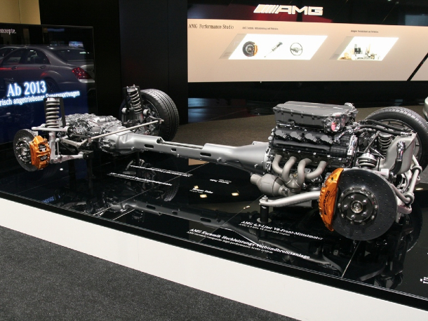 Der absolute Star von Halle 2 war jedoch definitiv der neue Mercedes-Benz SLS AMG, der erste Sportwagen, der von AMG allein entwickelt werden durfte und ohne Bindung an ein vorhandenes Modell entstehen konnte. Mit seiner Formensprache und den Flügeltüren zitiert er ein weltberühmtes Fahrzeug, das ebenfalls den Stern im Kühlergrill trug: den 300 SL. Für das Jahr 2013 wurde eine weitere Version des SLS mit Hybridantrieb angekündigt. Ein erstes Chassis war bereits ausgestellt.