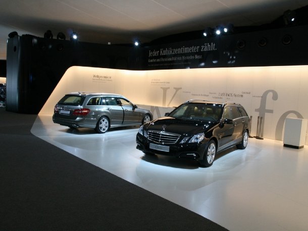 Mercedes-Benz selbst stellte seinen Messeauftritt in diesem Jahr ins Öko-Rampenlicht und präsentierte neben dem Studienfahrzeug BlueZERO E-Cell Plus und dessen Schwesterfahrzeug BlueZERO F-Cell auch gleich die S-Klasse als S400 Hybrid und S500 Plug-In Hybrid vor. Dazu gesellte sich das neue E-Klasse T-Modell, das für wohlhabendere Familienväter wohl wieder die Messlatte im Segment der Oberklasse-Kombis hochlegen dürfte. Beiläufig wurde der 30ste Geburtstag des G Modells gefeiert, eine beispiellose Erfolgsserie für einen Geländewagen, der beinahe unverändert seit 1979 vom Band läuft.