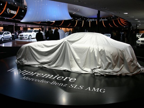 Der absolute Star von Halle 2 war jedoch definitiv der neue Mercedes-Benz SLS AMG, der erste Sportwagen, der von AMG allein entwickelt werden durfte und ohne Bindung an ein vorhandenes Modell entstehen konnte. Mit seiner Formensprache und den Flügeltüren zitiert er ein weltberühmtes Fahrzeug, das ebenfalls den Stern im Kühlergrill trug: den 300 SL. Für das Jahr 2013 wurde eine weitere Version des SLS mit Hybridantrieb angekündigt. Ein erstes Chassis war bereits ausgestellt.