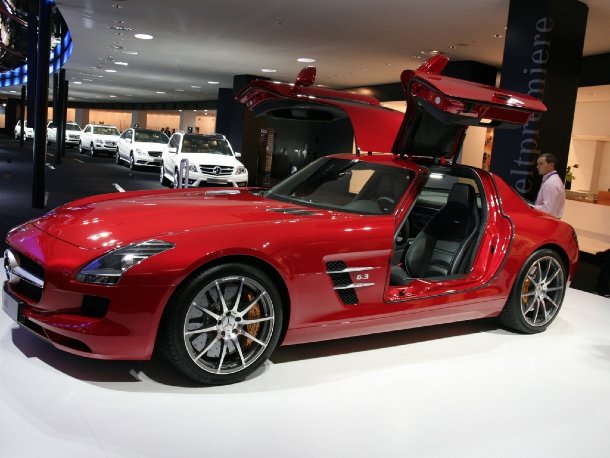 Der absolute Star von Halle 2 war jedoch definitiv der neue Mercedes-Benz SLS AMG, der erste Sportwagen, der von AMG allein entwickelt werden durfte und ohne Bindung an ein vorhandenes Modell entstehen konnte. Mit seiner Formensprache und den Flügeltüren zitiert er ein weltberühmtes Fahrzeug, das ebenfalls den Stern im Kühlergrill trug: den 300 SL. Für das Jahr 2013 wurde eine weitere Version des SLS mit Hybridantrieb angekündigt. Ein erstes Chassis war bereits ausgestellt.