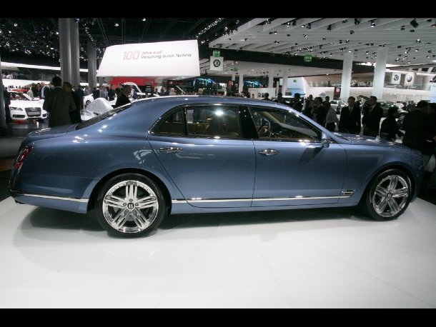 Die britische Edelmarke Bentley präsentierte den Continental Supersports erstmals in Deutschland. Dieser Wagen ist in der Lage Ethanol zu tanken, womit Bentley auf den aktuellen Ökotrend in der Automobilbranche reagiert. Daneben stand der Continental GTC Series 51, ein Sondermodell mit spezieller, dreifarbiger Innenausstattung. Star des Messestandes war aber selbstverständlich der nagelneue Mulsanne, das Flaggschiff aus Crewe. Die Individualisierungsmöglichkeiten für das ganz eigene Bentley-Unikat wurden anhand einer Regalwand und eines Farb-Beispiel-Tisches vorgestellt und umfassen eigentlich alles, was man sich vorstellen kann.
