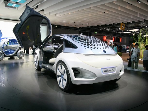 Schließlich bei Renault angekommen, traf man neben der kompletten RS-Flotte, bestehend aus Twingo, Clio und Megane, auch auf die nun vollständige Megane-Familie, die mit dem Kombi GranTour und der Limousine Fluence ergänzt wurde. Außerdem zeigte Renault mit Fluence Z.E., Zoe Z.E., Twiggy Z.E. und Kangoo Z.E. vier Studienfahrzeuge mit Elektroantrieb. Z.E. steht dabei für Zero Emission. Da es sich eh um reine Versuchsfahrzeuge handelt, wurde auch in punkto Leuchtendesign experimentiert. Warum sollen Lampen immer nur weiß, orange und rot sein, wenn sie auch grün oder blau leuchten könnten? Und warum sollte ein Auto an der Front nicht kommunizieren können? Eben, muss halt erstmal ausprobiert werden.