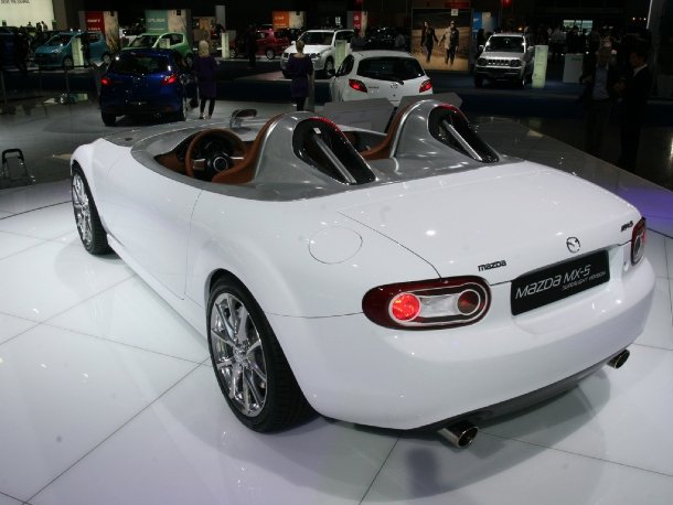 Die zweite japanische Marke in Halle 3.1, Mazda, stellte neben der aktuellen Produktpalette den erfolgreichen Roadster MX-5 in einer besonders sportlichen Superlight-Variante vor. Vorerst bleibt dieses Fahrzeug zwar nur eine Studie, Mazda hat jedoch bei entsprechendem Interesse auch schon Conceptcars in die Serie gebracht.