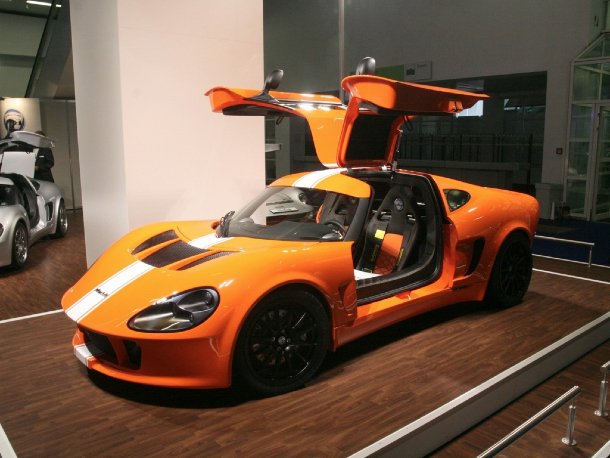 Zurück nach Deutschland, genau gesagt in den Osten. Vor vielen Jahren zu Zeiten der ehemaligen DDR gab es hier einen legendäre Sportwagen, den Melkus RS1000 auf Wartburg-Basis. Noch heute ist die Firma Melkus in Familienhand und nun ist es endlich wieder soweit: Melkus baut einen Sportwagen. Mit dem RS2000 auf Lotus Exige-Basis möchte man den Markt ein wenig bereichern. Der Flügeltürer, der optisch an den „Vorgänger“ erinnert, wird in Handarbeit und ganz nach Kundenwunsch gefertigt. Und alltaugstauglich ist er außerdem, was auf der Messe durch die obligatorische Kiste Bier im Kofferraum bewiesen wurde. Auf dem Messestand war außerdem ein auf den ersten Blick normaler RS1000 ausgestellt. Wer genau hinsah, stellte jedoch fest, dass die Aufschrift „RS1600“ lautete. Es handelt sich um ein Unikat mit Audi-1,6-Liter-Motor. Bei einem Gesamtgewicht von unter einer Tonne dürften die Fahrleistungen beeindruckend sein.