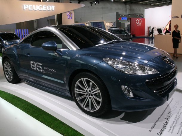 Bei der Konzernschwester Peugeot gab es zwei Schwerpunktthemen. Zum einen umweltbewusste Fahrzeuge, für die die französische Marke dank Dieselpartikelfilter ja auch bekannt ist und zum anderen die Neuvorstellung eines Sportcoupés. Bei den umweltfreundlichen Fahrzeugen stand auch das diesjährige Siegerfahrzeug vom 24-Stunden-Rennen in Le Mans, der 908 HDi. Neu vorgestellt wurden der iOn, ein Kleinstwagen, der auf der IAA direkt mit Hybridantrieb zu sehen war, und das Conceptcar BB1. Das neue Sportcoupé RCZ auf 308-Basis wurde ebenfalls direkt als Hybridvariante mitvorgestellt, interessanter war für viele Besucher aber offensichtlich die Limited Edition in weiß mit schwarzen Felgen und Carbondach, die auf 200 Exemplare begrenzt ist. Bis zum ersten Fachbesuchertag waren bereits mehr als 100 Fahrzeuge verkauft.