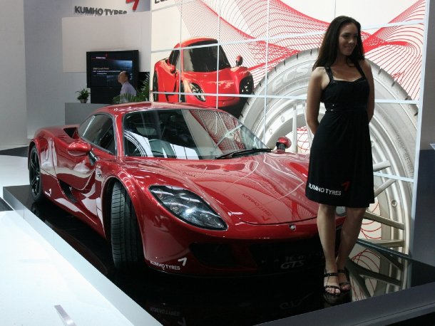 Die britische Kleinserienfirma Farbio hatte selbst keinen Stand, stellte aber das einzige Modell des Hauses, den Sportwagen GTS, auf dem Stand von Reifenpartner Kumho aus. Noch gibt es keinen Farbio GTS auf deutschen Straßen, aber das könnte sich in der nächsten Zeit ändern.