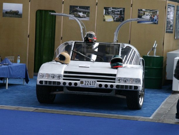 Des weiteren fanden sich in Halle 8 einige Kuriositäten. Da wäre zum Beispiel der Hartung Sparta zu nennen, ein dreisitziger, geländegängiger Sportwagen, an dem Erbauer Helmut Hartung seit 1973 in Andorra, einem Kleinstaat zwischen Spanien und Frankreich schraubt. Ab 2010 soll das Fahrzeug zu Preisen zwischen 200.000,- und 250.000,- Euro zu bestellen sein. Ein 6,6-Liter V8-Diesel mit bis zu 2.000 Newtonmeter Drehmoment sorgt für den standesgemäßen Antrieb.