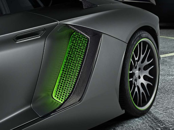 Durch passgenaue Anbauteile wird aus dem Aventador der Hamann Limited – ein imposantes, ja geradezu stierisches Fahrzeug. Vorn sorgen Luftschachteinsätze für eine gezieltere Kühlung. Dazu gesellen sich neue Lufteinlässe vor der vorderen Haube und eine nach vorn verlängerte Spoilerlippe unter der Schürze. Durch neu gestaltete Seitenschweller und einen vergrößerten Diffusor in der hauseigenen Heckschürze wird rundum mehr Anpressdruck erzeugt. Dabei hilft auch der feststehende Heckflügel. Durch eine Lufthutze wird das Triebwerk hinter den Passagieren mit zusätzlicher Frischluft versorgt. Alle Anbauteile sind wahlweise in Sichtcarbon, Wagen- oder Kontrastfarbe erhältlich. Ähnliches gilt für die Belüftungsgitter rund ums Fahrzeug.