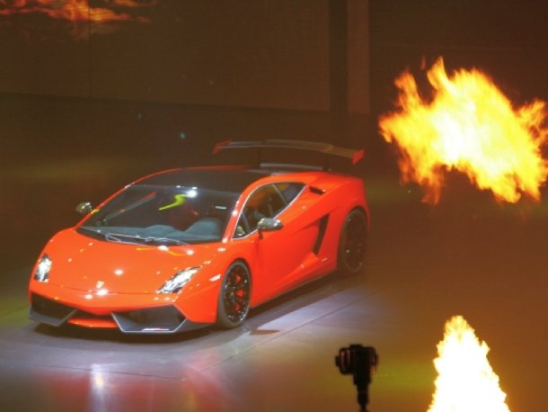 PS-stark ging es traditionsgemäß bei Lamborghini zu. Zur IAA brachten die Italiener ihren neuesten Renner auf Gallardo-Basis namens Super Trofeo Stradale mit. Lackiert wurde das gute Stück in der kräftigen Farbe Rosso Mars, die nicht von ungefähr eine Hommage an die historische Rennfarbe Italiens ist. Als Basis für den Renner nahm man sich den Superleggera zur Brust und stattete ihn mit einem größeren Flügel aus, der mehr Abtrieb generiert. Motorseitig beließ man es bei den sicherlich ausreichenden 570 PS. Italien feiert dieses Jahr sein 150-jähriges Bestehen und ebenso viele Super Trofeo Stradale wird es geben. Wem Rosso Mars zu auffällig ist, dem bieten sich noch andere Farboptionen. Der rote Renner wurde während der Pressetage von zwei Lamborghini Aventador flankiert, von denen der Weiße danach von einem weißen Gallardo LP570-4 Spyder Perfomante abgelöst wurde.
