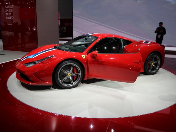 Bereits am Eingang zur Halle 6 wird deutlich: Hier stehen die Italiener. Das hat auf der IAA bereits eine kleine Tradition und führt aufgrund der relativ engen Halle teilweise zu Staus vor den Ausstellungsstücken. Da ist es schon ein wenig verwunderlich, dass in diesem Jahr bei Maserati größtenteils auf Absperrmaßnahmen rund um den Stand verzichtet wurden und damit der Blick zum Beispiel auf die Sichtcarbonmotorhaube am GranTurismo MC Stradale noch dichter ausfallen kann. Nebenan bei Ferrari blieb es hingegen bei den strengen Einlasskontrollen und den hüfthohen Sichtschutz rund um die teuren Ausstellungsstücke. Für den einen oder anderen Besucher der Messe war es enttäuschend, dass sich kein lebensgroßer LaFerrari in Frankfurt finden ließ, aber die Sportwagenmarke aus Maranello stellte die IAA ganz in den Bann des neuen 458 Speciale, mit dem man im Segment der Mittelmotorsportwagen ordentlich aufräumen will. Nicht vergessen darf man Abarth, die mit einem Sondermodell an den 50sten Geburtstag des 595 auf Basis Fiat 500 erinnern.