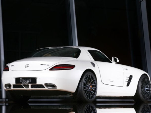 Bereits ab Werk ist der SLS von AMG kein Leisetreter. Dennoch nahm sich Inden die Abgasanlage des Flügeltürer-Sportwagens vor und verfeinert sie mit Fächerkrümmern und Sportkatalysatoren. Zusammen mit einer ebenfalls angepassten Motorsoftware erreicht das V8-Triebwerk nun 458 kW/623 PS. Ein Plus von 52 Pferdestärken gegenüber der Ausgangsbasis. Dass zusätzlich auch der kernige Sound noch einmal eine Spur böser ausfallen dürfte, muss vermutlich nicht extra Erwähnung finden.
